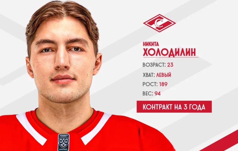 «Холодилин, которому сегодня исполнилось 23 года, пополнил систему «Спартака» в начале июня, в результате обмена – на счету нападающего силового плана 115 матчей в КХЛ и 20 (12+8) набранных очков», — говорится в заявлении команды.