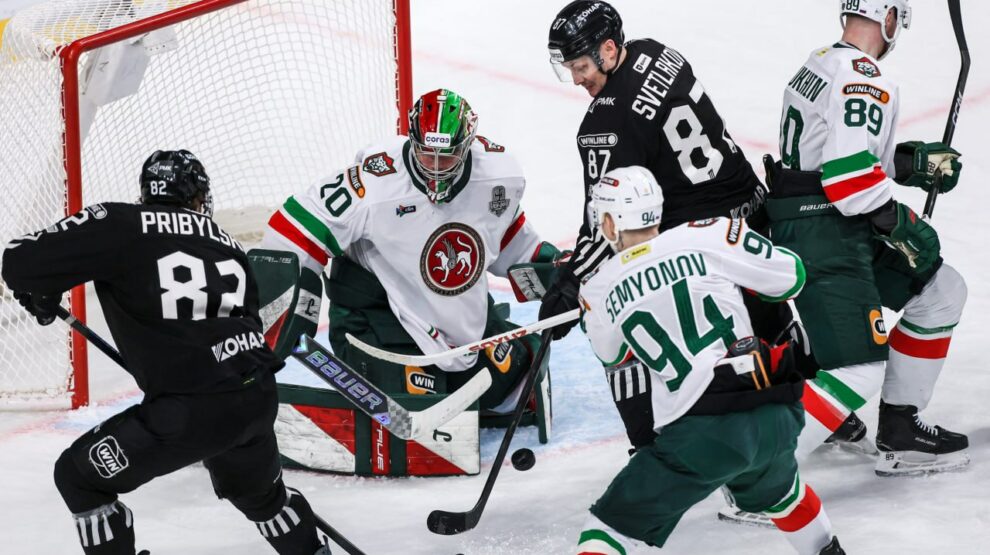 Позже гола лишили и «Ак Барс»: Николаев отразил мощнейший бросок Яшкина в прыжке, а судьи отменили свое же решение о пересечении линии после длительного просмотра.