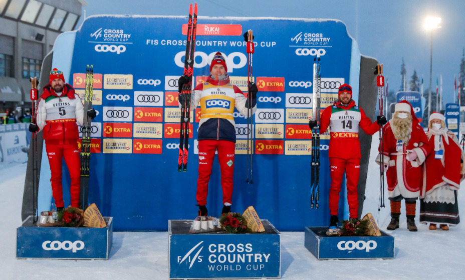 Победу праздновал Александр Большунов, вторым финишировал Сергей Устюгов, а третьим — Артем Мальцев.