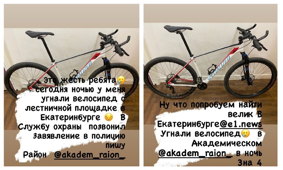 30-летний спортсмен надеется, что велосипед ему все-таки вернут: «Ну что попробуем найти велик в Екатеринбурге. Угнали в Академическом в ночь с 3 на 4 июня», — обратился он к новостному сайту E1.
