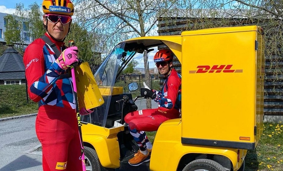 Он вместе с партнером по национальной команде Йоханнесом Клебо, который на Олимпиаде-2022 в Пекине завоевал четыре награды, переоделись в курьеров международной службы доставки DHL.