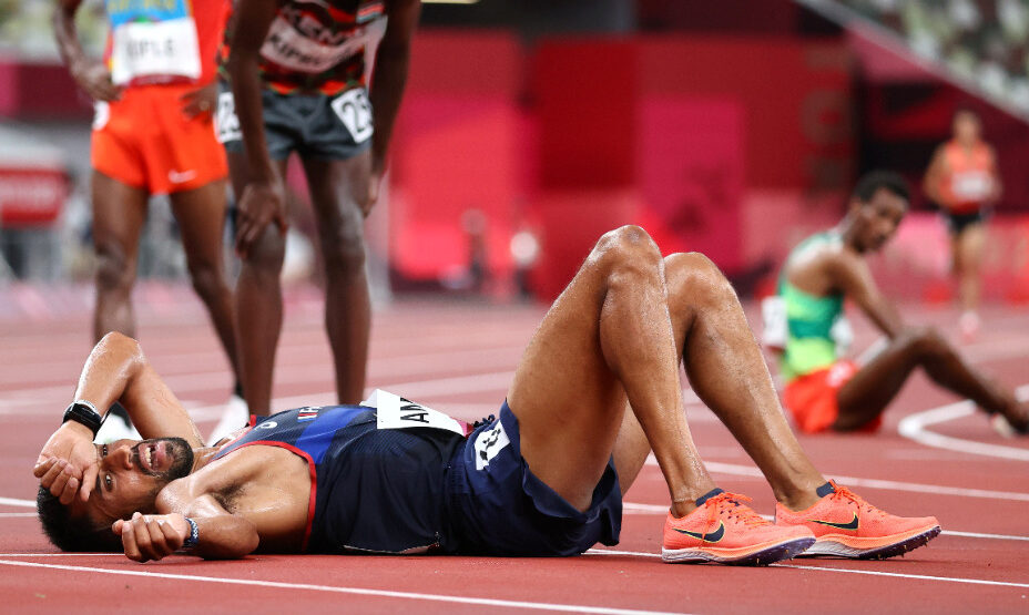 Представитель Франции Морхад Амдуни во время забега олимпийской дистанции в марафонском беге специально опрокинул весь ряд бутылок с водой на одной из станций гидратации, которая является источником питания для атлетов.