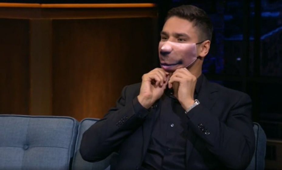 В конце дружеского диалога Иван Ургант, зная, что Евгений Рылов, большой любитель котов, решил вручить ему небольшой презент. Ведущий подарил ему маску с изображением собственного лица спортсмена.