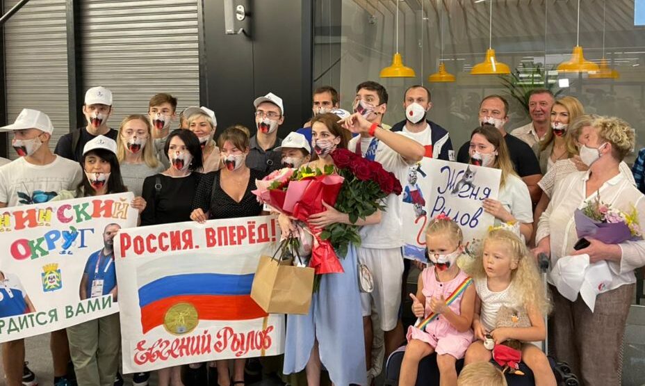 Главным героем встречи рейса из Токио стал Евгений Рылов. Пловец впервые за 25 лет выиграл золото для России в мужском бассейне. Потом сразу же решил оформить «золотой» дубль, выиграв еще одну медаль высшей пробы. Короля токийского бассейна встречала… Банда котиков. Вернее, группа людей в защитных масках, на которых была нарисована улыбка кота. Маска Рылов уже стала символом победы. Кстати, на пьедестал с такой маской Евгения не пустили, зато пропустили в самолет и аэропорт.