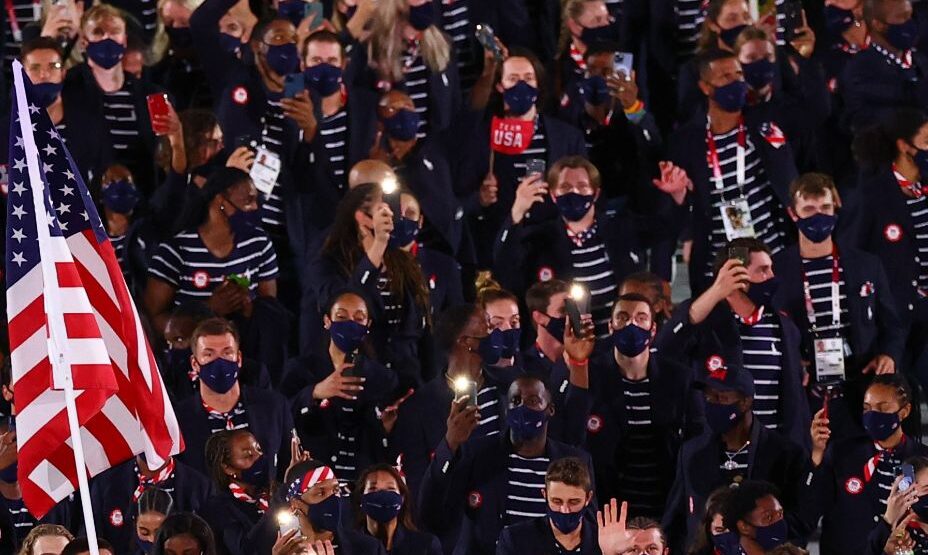 Форму американцам придумал Ральф Лорен. Но на этот раз пригласили еще и Ким Кардашьян. Правда плоды ее усилий просто так на Церемонии открытия не увидишь. Фирма Кардашьян изготавливала нижнее белье для американских спортсменов.