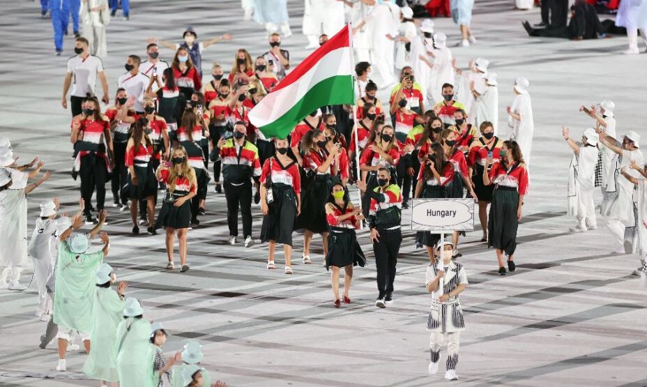 Многие попытались сделать комплимент хозяевам Олимпийских игр своими нарядами. Кто-то с помощью цветов, кто-то6 как Россия – с помощью шрифтов. А венгры просто взяли кимоно и переделали их на свой лад. Получились очень необычные женские блузы.