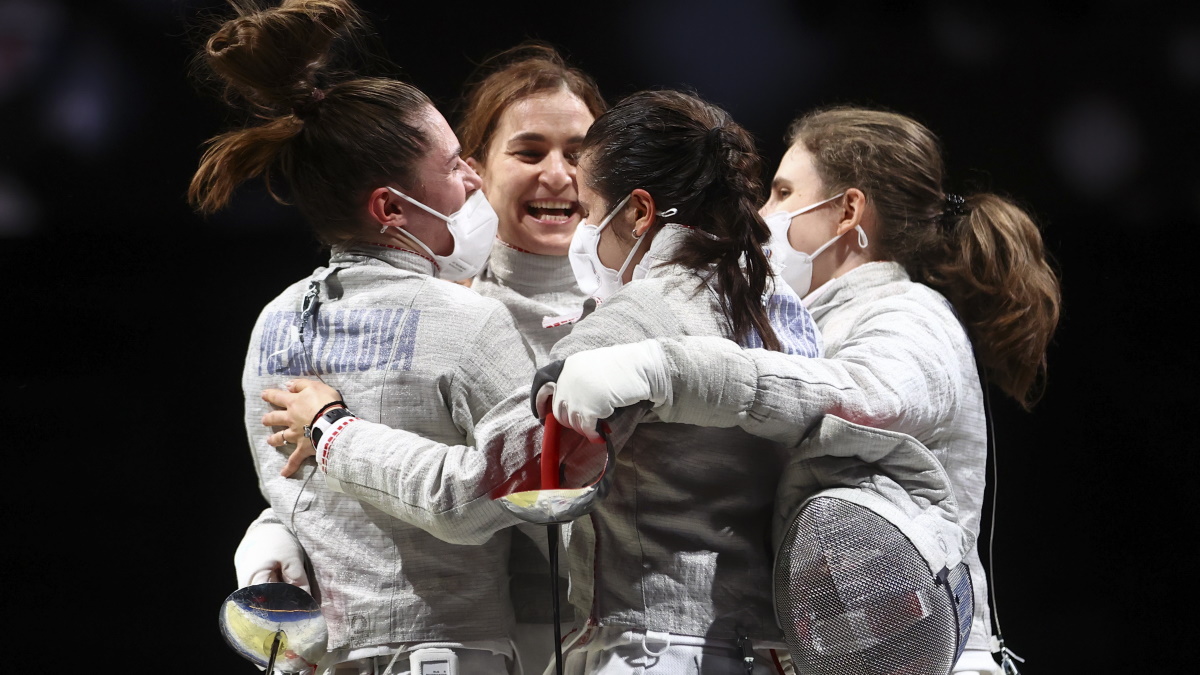Российские саблистки Ольга Никитина, Софья Великая, София Позднякова и Светлана Шевелева завоевали золотые медали в командном турнире, победив в финале француженок – 45:41. Позднякова выиграла уже второе «золото» на Играх в Токио – в личных и в командных соревнованиях, а Великая, победившая в этой дисциплине и в Рио-2016, стала двукратной олимпийской чемпионкой в команде. При этом, решающий вклад в финальную победу внесла Никитина. Она одержала победы в двух своих тех мини-боях с общей разницей «плюс» восемь. Великая и Позднякова взяли по одному бою из трех, с разницей, соответственно, «минус» один и «минус» три. В поединке за бронзу кореянки взяли верх над итальянками – 45:42.