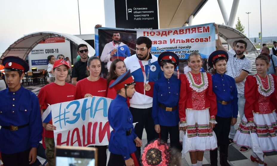 Военный оркестр, казачьи пляски и турецкие музыканты: В ростовском аэропорту встретили бронзового призера Олимпиады по дзюдо Нияза Ильясова