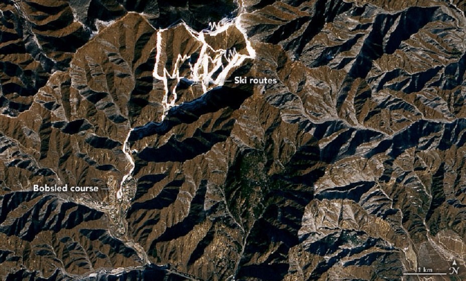 А снег-то там ненастоящий: NASA показало, как выглядит трасса Олимпиады лыжников и биатлонистов из космоса