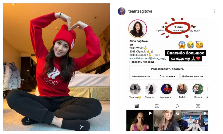 «Люблю вас»: Загитова отпраздновала на Олимпиаде отметку в миллион подписчиков в Инстаграме