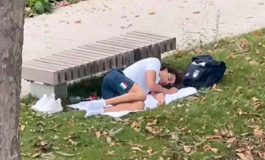 23-летнего спортсмена сфотографировали спящим на покрывале в одном из парков французской столицы. Об этом пишет Daily Mail.