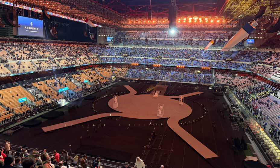 Главной ареной станет легендарный стадион Сан-Сиро (Milano San Siro Olympic Stadium) в Милане. Там пройдёт грандиозный спектакль под темой «Армония» (Armonia / Harmony) — с отсылками к итальянской культуре, музыке, искусству и единению города и гор. Ожидается участие звёзд мирового уровня, включая Марию Кэри, Лауру Паузини, Андреа Бочелли и других.