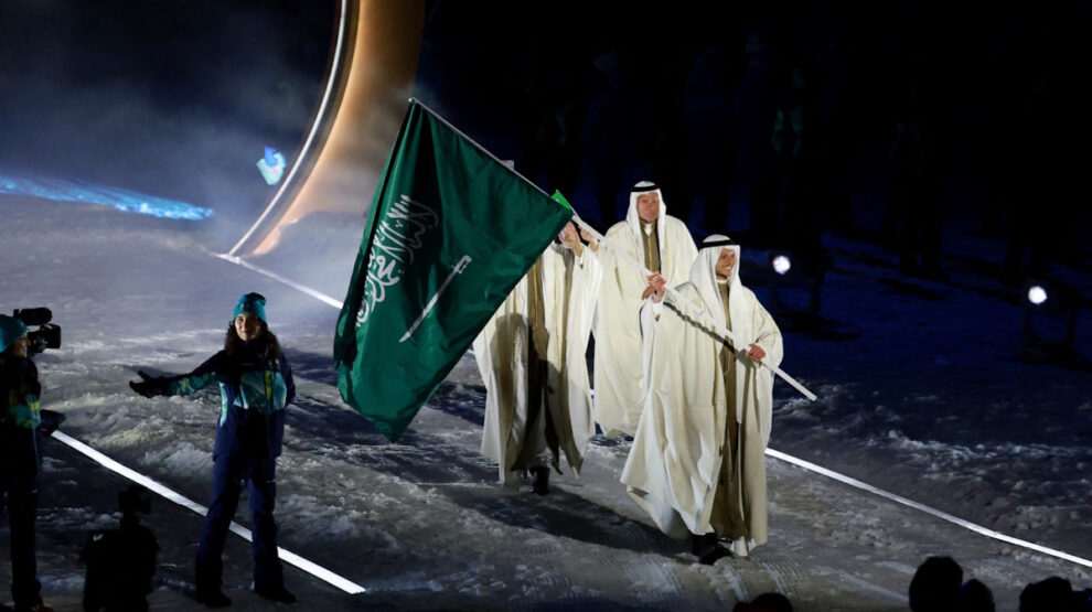 22:55. Сборная Канады — одна из первых мощных по числу участников и именам сборных прошла на параде. Но были и экзотические уже Саудовская Аравия, например.