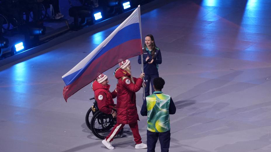 Российские паралимпийцы пронесли флаг на церемонии закрытия Игр в Италии