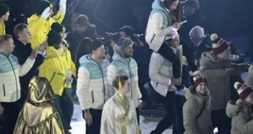 Внимание пользователей социальных сетей привлек эпизод с участием делегации из России. Во время прохода спортсменов лыжница Дарья Непряева забралась на плечи своего товарища по команде Савелия Коростелева. Момент попал в объективы камер.