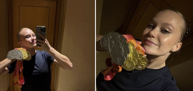 Гимнастка Ангелина Мельникова выложила фото с необычными медалями ЧМ в Джакарте