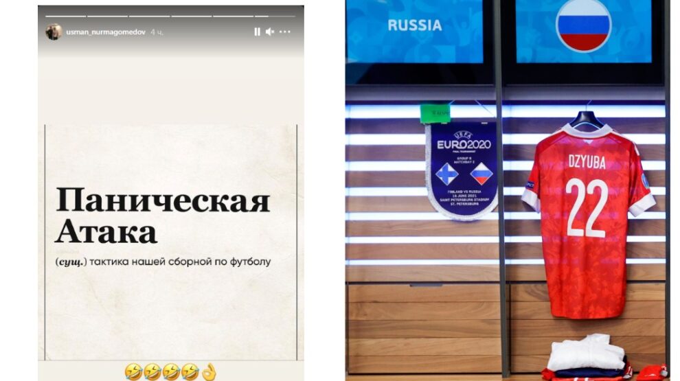 Он опубликовал в сторис на своей странице в Instagram картинку, на которой написано, что тактика сборной России — паническая атака.