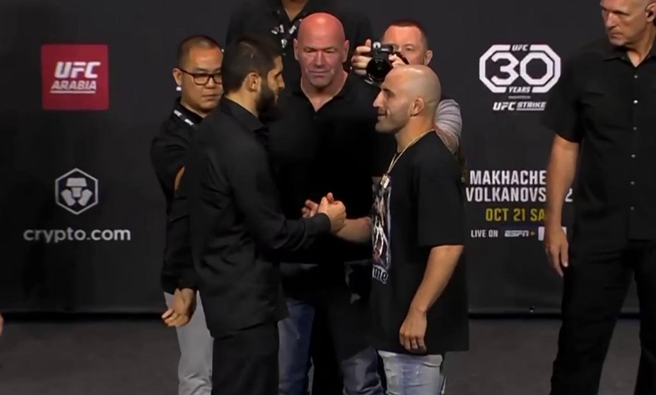 Махачев и Волкановски провели дуэль взглядов перед боем на турнире UFC 294