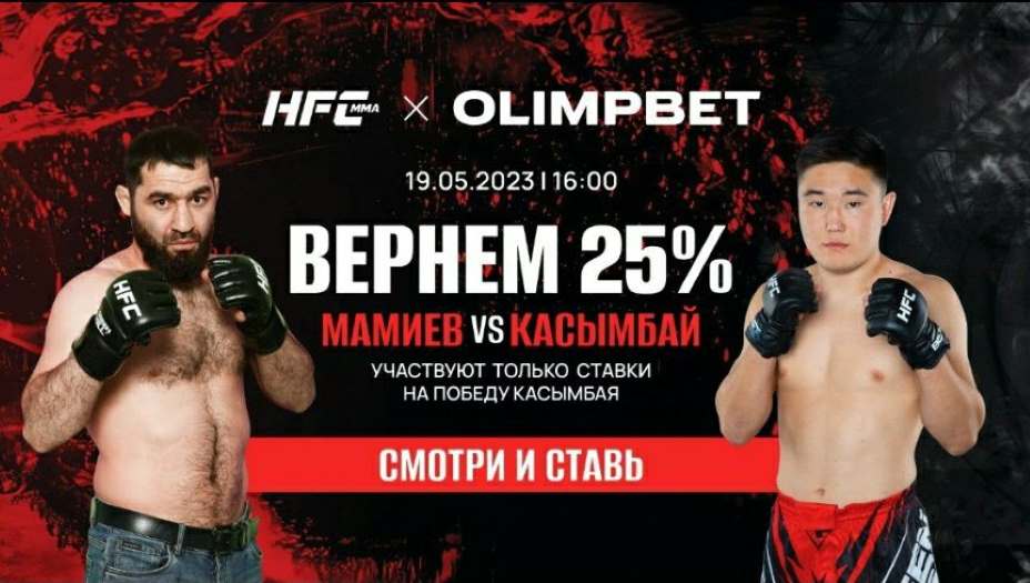 Смотрите прямую трансляцию турнира Hardcore MMA на сайте или в приложении Olimpbet, страхуйте ставку на победу Касымбая на 25% и получайте максимум эмоций от единоборств!