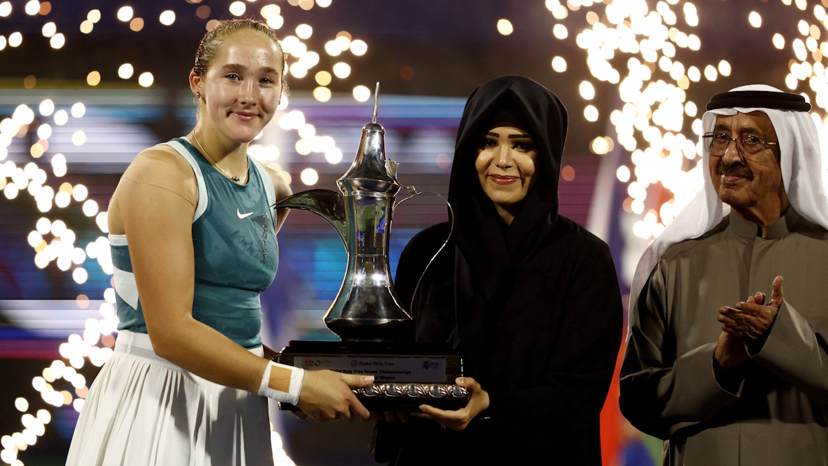 В то же время Мирра Андреева выиграла дорогой турнир ВТА-100 в Дубае и впервые ворвалась в первую мировую десятку. За свою первую в карьере победу 17-летняя россиянка получила чек на $597 тыс. (52 млн руб.), но еще не придумала, куда их потратить.