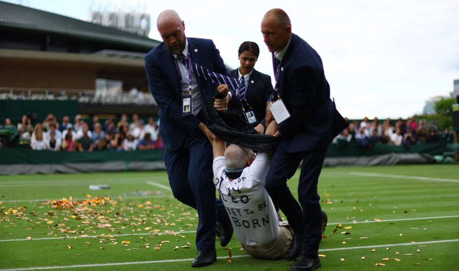 Организаторы больше всего боялись экоактивистов. Но уберечься не смогли. Активисты экологического движения Just Stop Oil, уже сорвавшие футбольные матчи, Гран-при Великобритании «Формулы-1» и забег легкоатлетов добрались и до Уимблдона.