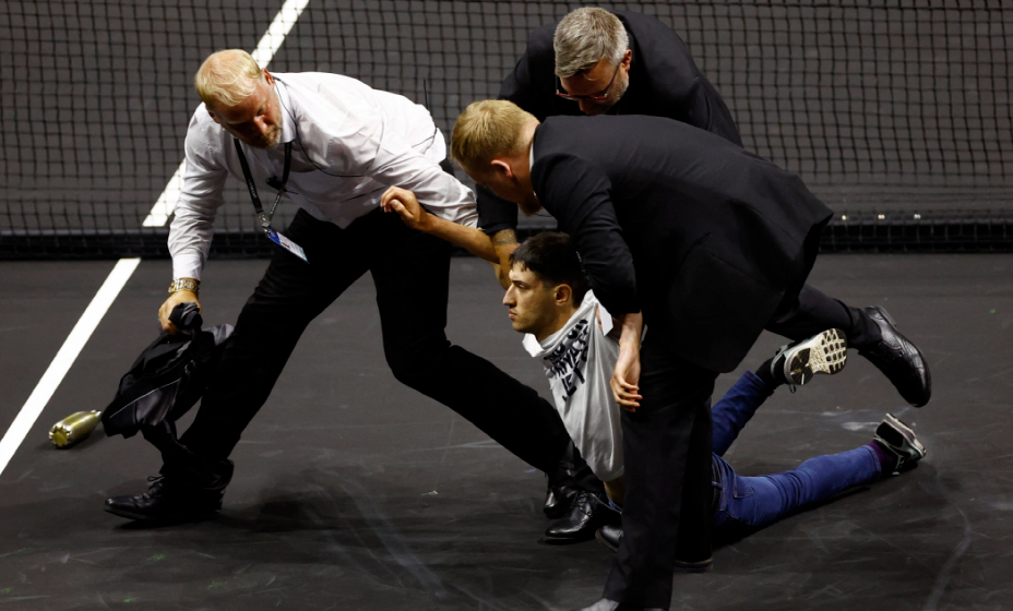 Неизвестный выбежал на корт и поджег себе руку в день последнего матча Федерера в карьере