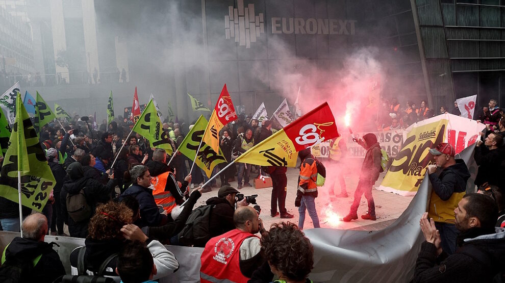 Миллионы французов не согласны с повышением пенсионного возраста и выходят на улицы в знак протеста. В ходе многих демонстраций происходят массовые беспорядки, на которые приходится реагировать полиции.