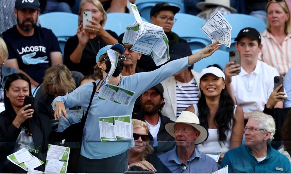 Матч Australian Open-2024 прерывался из-за болельщицы, бросившей на корт листовки с надписью «Свободу Палестине».