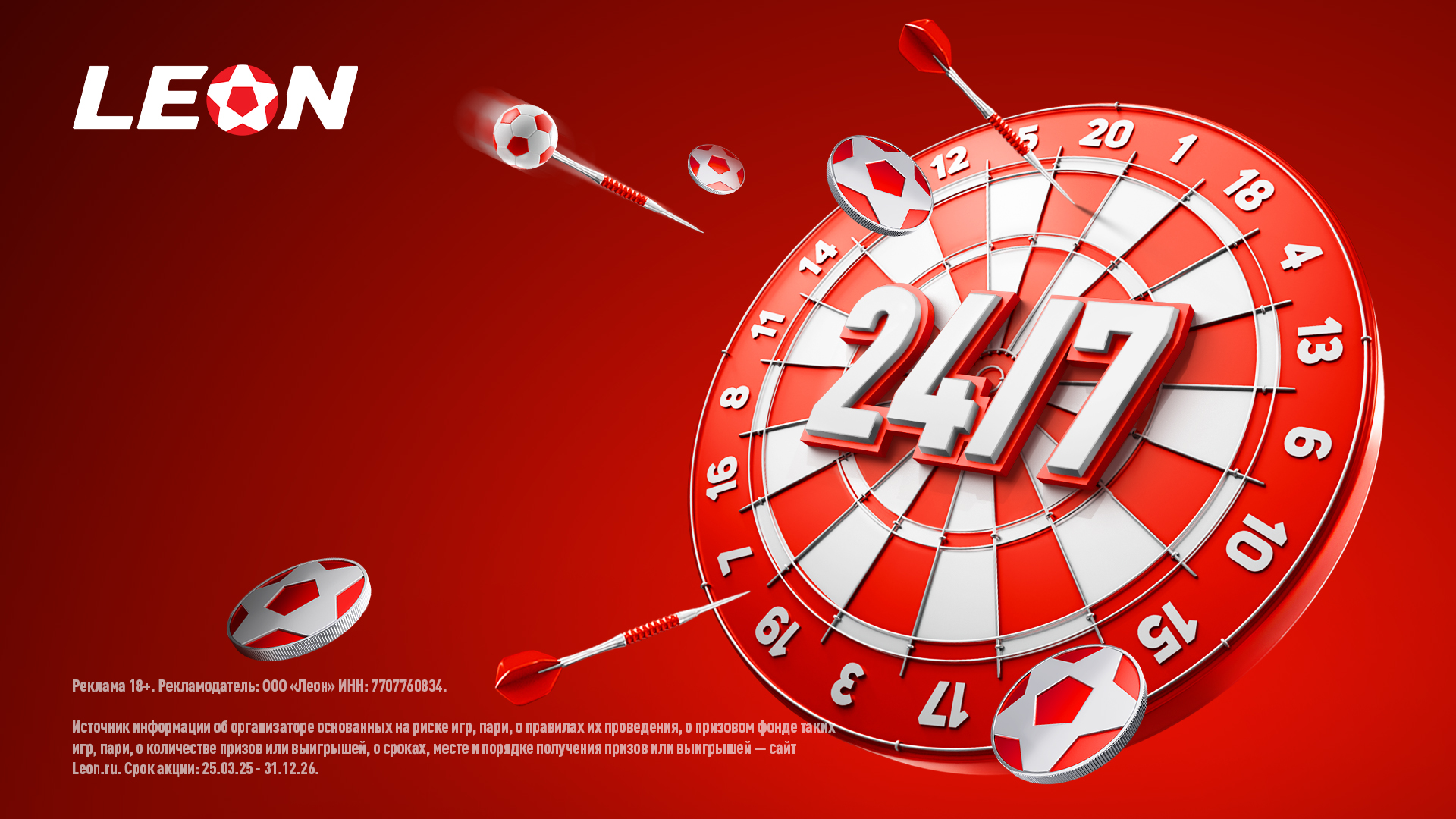 Букмекерская контора «Леон» предлагает новым клиентам в категории «Ставки 24/7» приветственный пакет из 10 фрибетов по 100 рублей каждый. Бонус предназначен для ставок на дартс, нарды, пенальти в футболе и буллиты в хоккее. Общая сумма бонуса составляет 1000 рублей в виде бесплатных ставок.