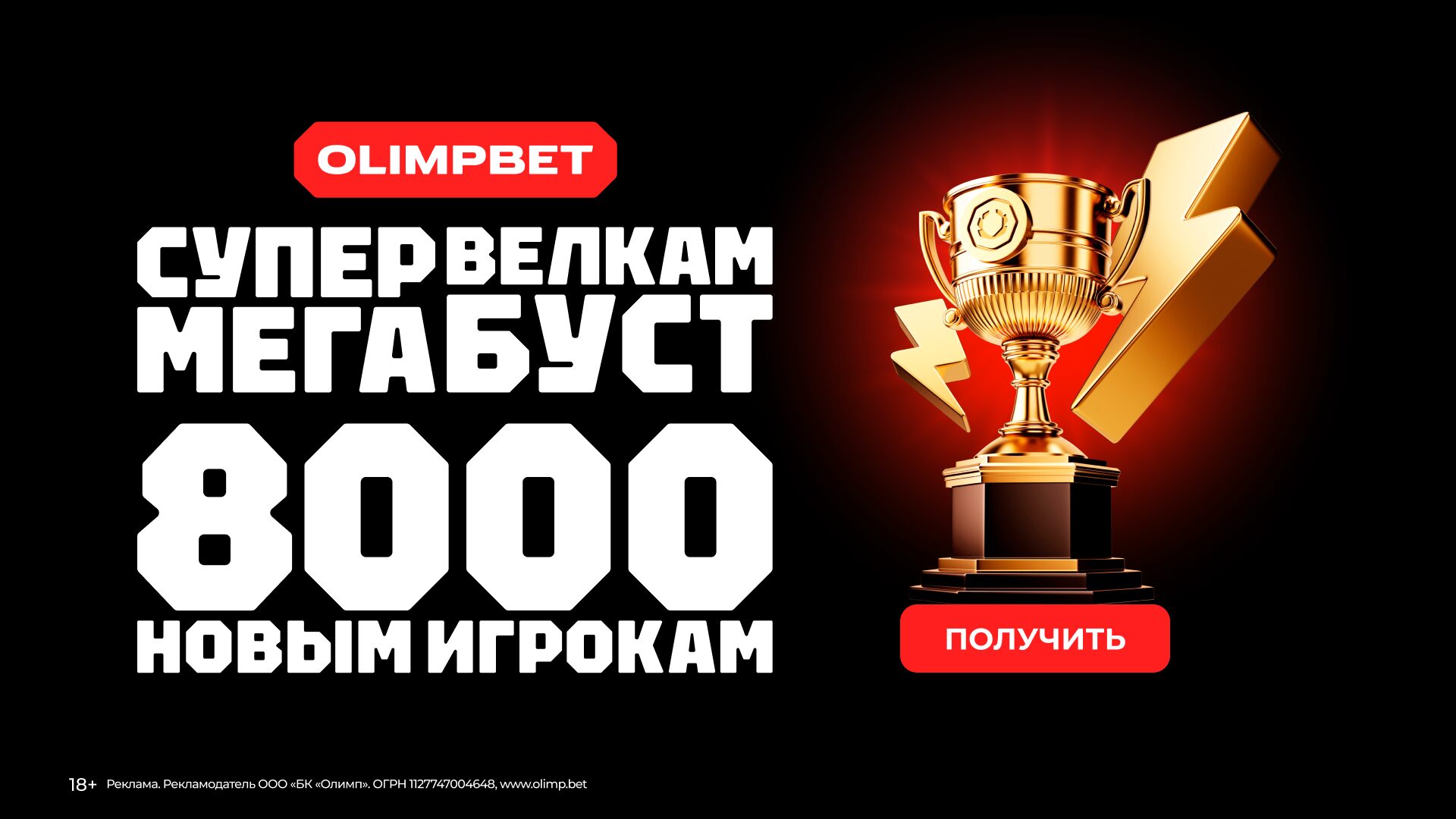 OLIMPBET: Внеси депозит от 1000 рублей и забери фрибет до 8000 рублей