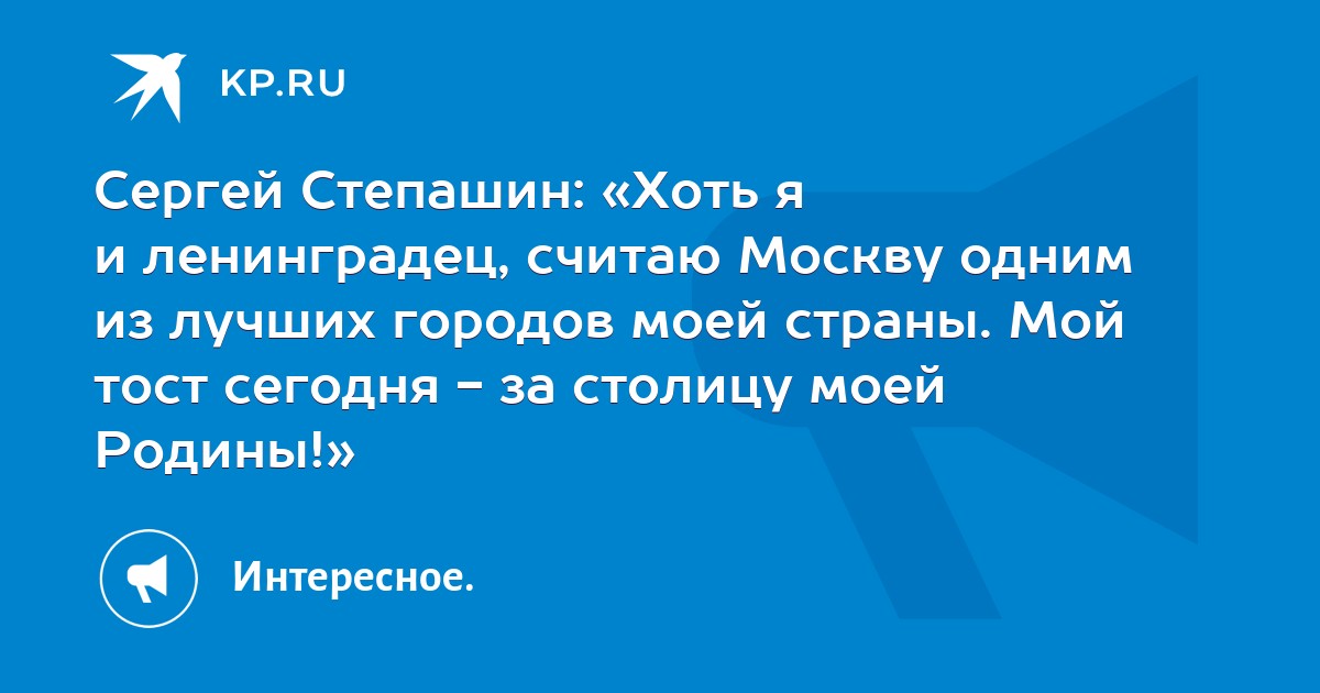 «Хоть я и ленинградец, считаю Москву одним из лучших городов моей страны. Мой тост сегодня - за столицу моей Родины!»