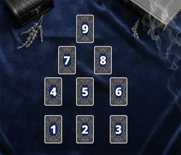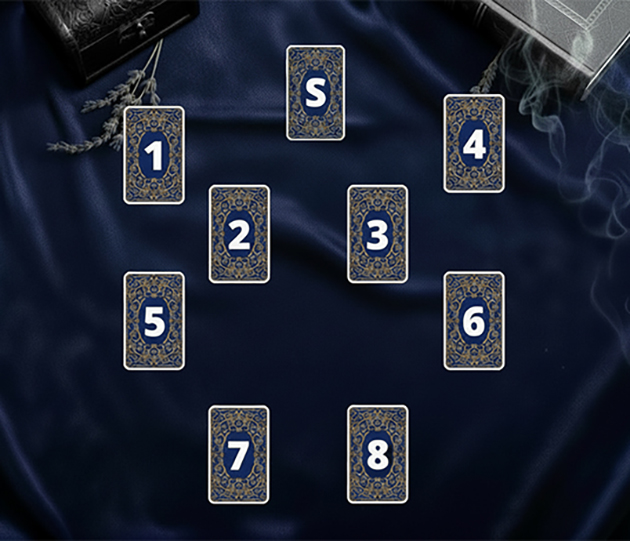 Этот расклад на ситуацию — для тех, кому мало общей картины и хочется разобрать все по косточкам. Да, он требует чуть больше сосредоточенности, но и ответ дает объемный и детальный. Хотя его часто используют для анализа отношений, он прекрасно работает для любого вашего вопроса — главное, четко его сформулировать.