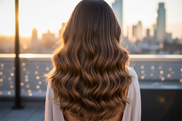 В результате получается сложное, многогранное сияние, которое оживляет цвет и добавляет визуальный объем даже тонким волосам.