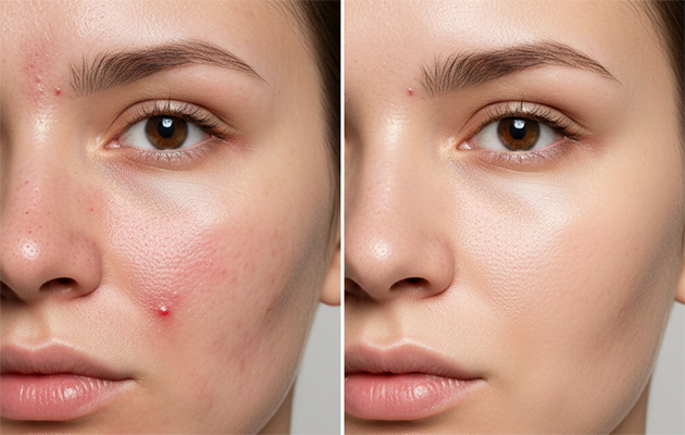 - последствия акне: атрофические рубцы (включая постакне), следы от воспалений и угревой сыпи;
