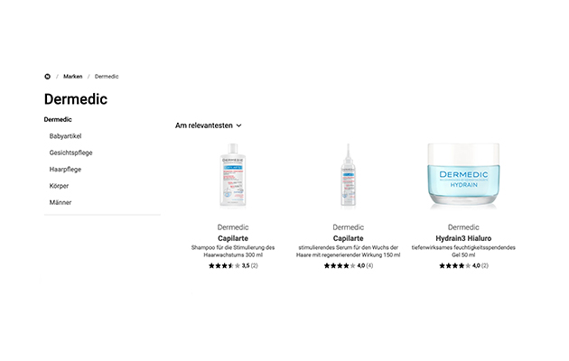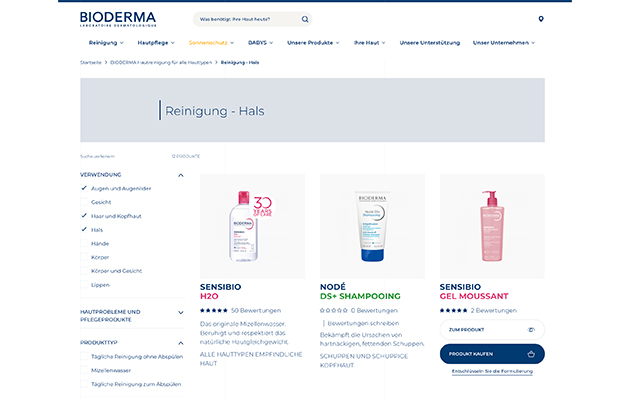 - большой выбор под разные дерматологические запросы, в том числе косметика для кожи головы и волос;