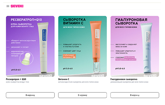 - прозрачная политика: на сайте Seveki есть понятные описания к каждому средству;