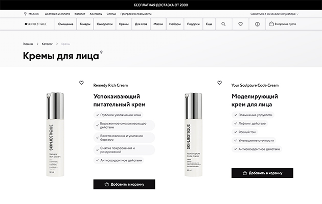 Российский бренд уходовой косметики реализует товар без наценки за упаковку и маркетинг. Потребителям нравится открытый подход бренда к диалогу: подробно описанный состав, указание концентрации активных компонентов, подтверждение происхождения сырья сертификатами. Ассортимент не очень широкий — на официальном сайте представлено 11 позиций. Но этого хватает, чтобы закрыть основные запросы покупателей: есть продукты и для сухой, и для жирной, и для чувствительной кожи. Потребителю легко разобраться самостоятельно: описание товара простое и лаконичное.