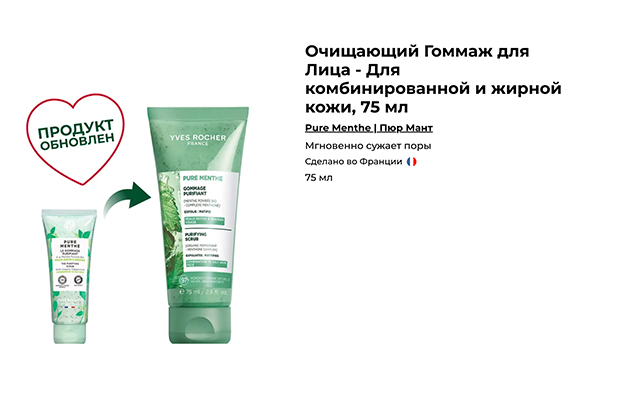 В отзывах от YVES ROCHER пользовательницы упоминают о нежной текстуре и приятном аромате, качественном очищении и охлаждающем эффекте, который придает перечная мята. Состав бережно отшелушивает, не повреждая кожу.
