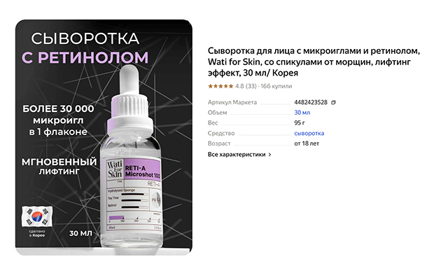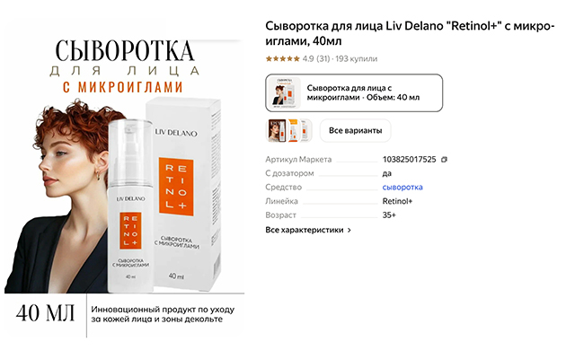 Это сыворотка, но не жидкая, а необычной кремовой текстуры. Retinol+ используется для кожи лица и содержит микроиглы; производитель — компания из Беларуси.