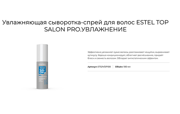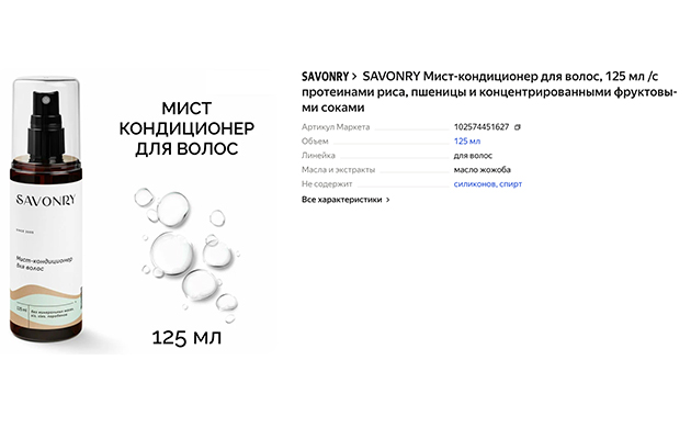 Спрей помогает быстро привести волосы в ухоженный вид и добавить им здорового сияния без сложной укладки.