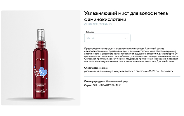 После нанесения миста на волосы остается легкий аромат лесных ягод. Средство подходит для всех типов и может использоваться всей семьей.