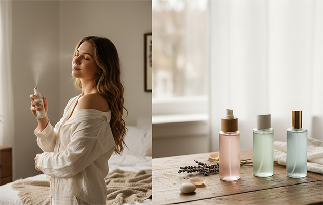 Спреи легко наносятся, освежают кожу и позволяют экспериментировать с ароматами без привязки к одному флакону. В спреях нет шиммера, но за счет увлажняющих свойств они придают коже едва заметное влажное сияние.