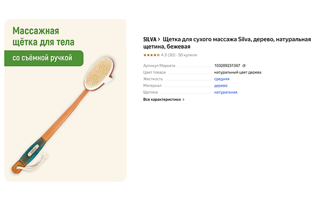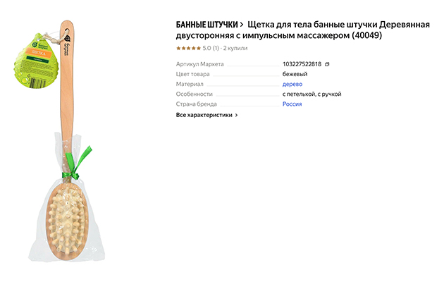 Бежевая деревянная щетка с импульсным массажером от бренда «Банные штучки» сочетает функциональность и эстетику. Благодаря импульсному массажеру ею удается добиться очищения кожи тела. Выполненная из дерева щетка с длинной ручкой обеспечивает комфортный сеанс: ее конструкция позволяет проводить полный массаж всего тела, в том числе труднодоступных зон. Эргономичный дизайн ручки обеспечивает простоту использования. Щетку используют как в домашнем уходе, так и приобретают для бани. По отзывам, у щетки для сухого массажа есть петелька — видно, что производитель подумал обо всех деталях.