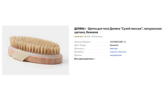 Щетка для тела для сухого массажа от Boomshakalaka как минимум привлекательна минималистичным дизайном, а когда узнаешь о ее характеристиках — мотивация к покупке увеличивается. Изделие выполнено из натуральных материалов — делает эффективный массаж, но что это значит? Она улучшает кровообращение и стимулирует процессы регенерации кожи. Ее частое использование помогает женщинам визуально улучшить вид кожи, делая ее более эластичной за счет кровообращения. В процессе использования щетка не царапает кожу, а делает ее более подтянутой и здоровой. Щетина — натуральная (кабан), рабочая поверхность дополнена волокном кактуса, ручка изготовлена из ясеня.