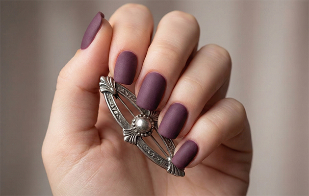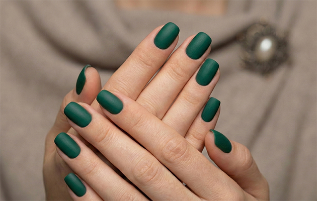 - матовый маникюр. Он делается с помощью матовых лаков или топового покрытия с матовым эффектом, которое наносится поверх любого лака;