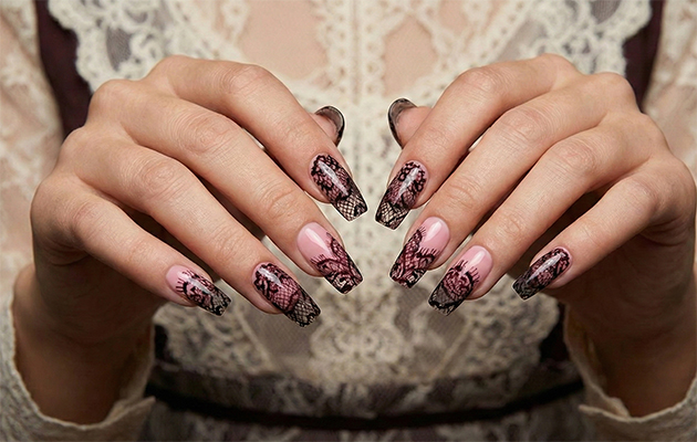 Несмотря на то, что в технике вуали есть явные отсылы к стилистике гранжа для современных студенток такой вариант вполне позволителен. Правда, лучше сочетать его с платьями. Сама техника «вуали» создается при помощи узора, выполненного темным лаком на светлой или светлым/темным на прозрачной основе. Этим элементом может быть покрыт как весь ноготь, так и часть его, все зависит от настроения мастера и модели.