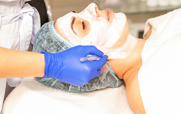 Для того, чтобы получить максимальный эффект от процедуры, сначала наносят препарат на основе феноксигликолевой, гликолевой или молочной кислот в невысокой концентрации (до 5%). Также это поможет специалисту определить чувствительность кожи к компонентам.