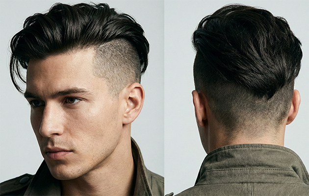 Коротко выстриженные виски, длинные волосы на макушке, приподнятые и зачесанные назад — это важные составляющие стрижки помпадур. Форма достаточно плавная и мягкая. Но такая стрижка точно не подойдет тем, кто не готов на длительную укладку каждый день.
