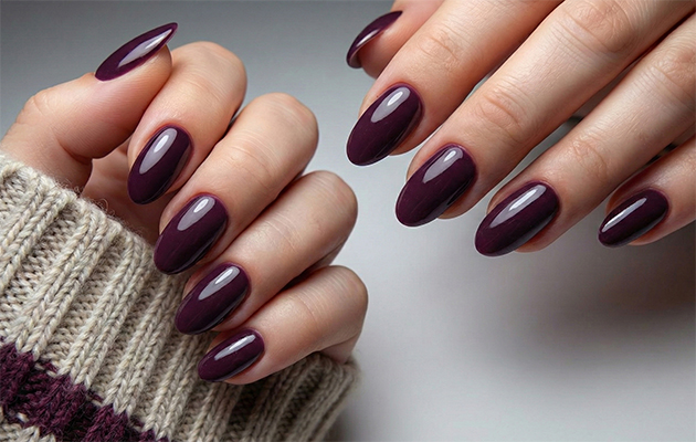 Маникюр миндаль осенью — один из самых эстетичных вариантов сезона. Соцсети заполнены фотографиями именно с такой формой. Она визуально удлиняет пальцы и выгодно смотрится как на темных, так и на светлых покрытиях. Идеи маникюра осенью в этой форме чаще всего демонстрируют глубокие насыщенные цвета: темная слива, бутылочный зеленый, шоколадный.