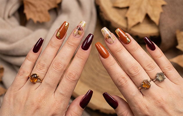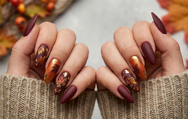 Чтобы продемонстрировать всю красоту длинных ногтей, стилисты рекомендуют отдавать предпочтение насыщенным тонам — бордо, коричневый, приглушенный оранжевый. Особенно выразительно на длинных ногтях смотрится «кошачий глаз» в сливовых тонах. А вот любительниц холодных оттенков порадует цвет осеннего неба и серый в сочетании с матовым и глянцевым покрытием, которые осенью 2026 года набирают свою популярность.